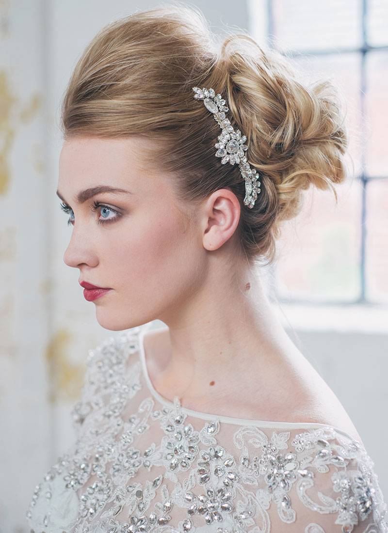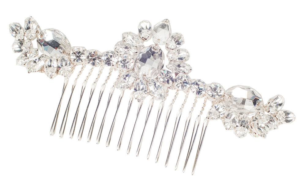 This statement is comb handmade with Swarovski crystal and clear Diamante stones. The Valentina comb sits beautifully under a bun or over a veil in an almost regal looking design.