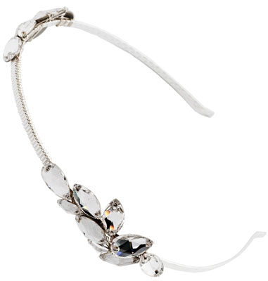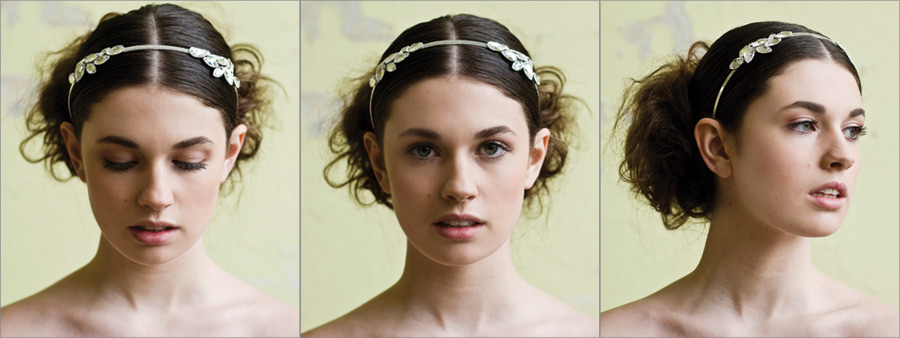 Created in with a subtle leaf detail effect the Athena headband is directly influenced by greek headpieces and is wonderfully light to wear. Swarovski crystals and small glass bugle beads have been woven with silver plated wire to create the Athena headband which is ideally suited to a centre styled hairstyle.