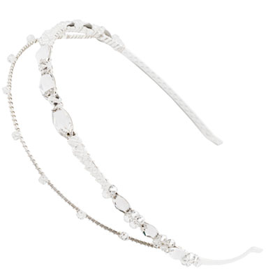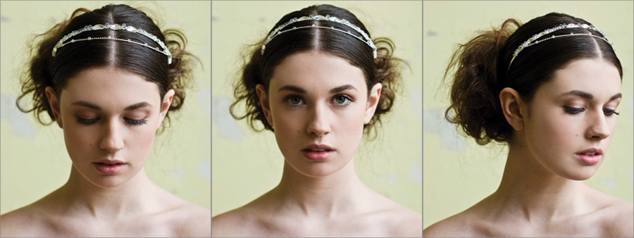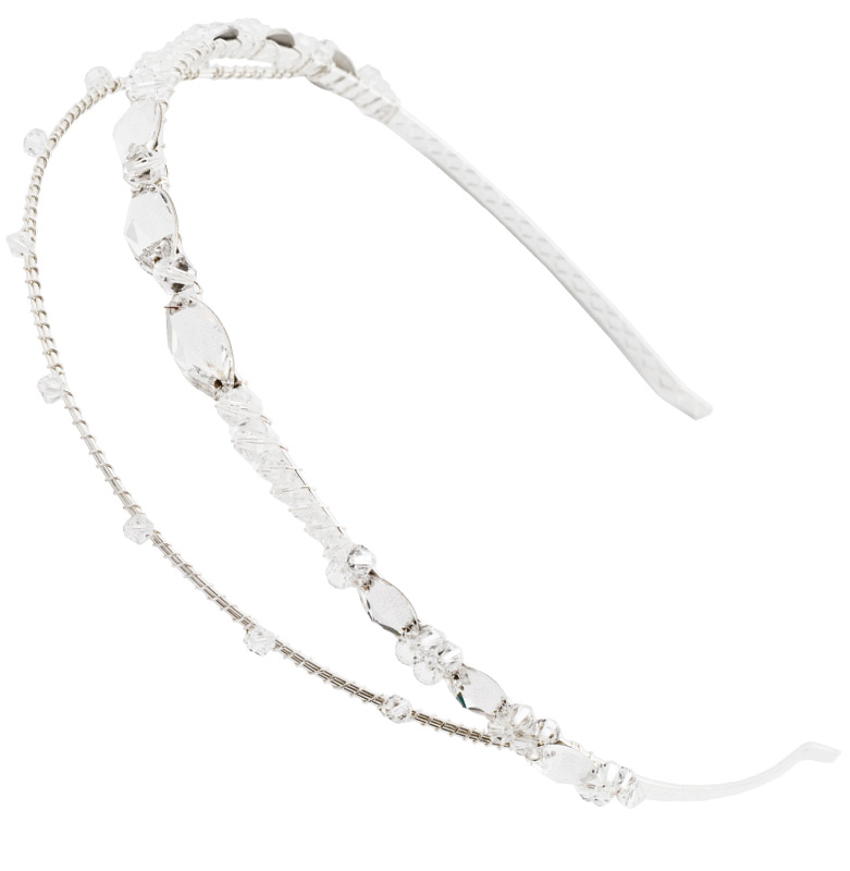 Dainty and lightweight Hera is available in both gold and Silver finishes. Designed with flat Swarovski crystals, clear crystals,glass beads and finished with gold or silver plated wire, the Hera headband can be work either way around to create a different look from day to night.